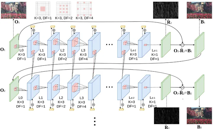 Rain streaks can severely degrade the visibility, which causesmany current computer vision algorithms fail to work. So it is necessaryto remove the rain from images. We propose a novel deep network ar-chitecture based on deep convolutional and recurrent neural networksfor single image deraining. As contextual information is very importantfor rain removal, we first adopt the dilated convolutional neural networkto acquire large receptive field. To better fit the rain removal task, wealso modify the network. In heavy rain, rain streaks have various direc-tions and shapes, which can be regarded as the accumulation of multiplerain streak layers. We assign different alpha-values to various rain streaklayers according to the intensity and transparency by incorporating thesqueeze-and-excitation block. Since rain streak layers overlap with eachother, it is not easy to remove the rain in one stage. So we further de-compose the rain removal into multiple stages. Recurrent neural networkis incorporated to preserve the useful information in previous stages andbenefit the rain removal in later stages. We conduct extensive experi-ments on both synthetic and real-world datasets. Our proposed methodoutperforms the state-of-the-art approaches under all evaluation metrics.
